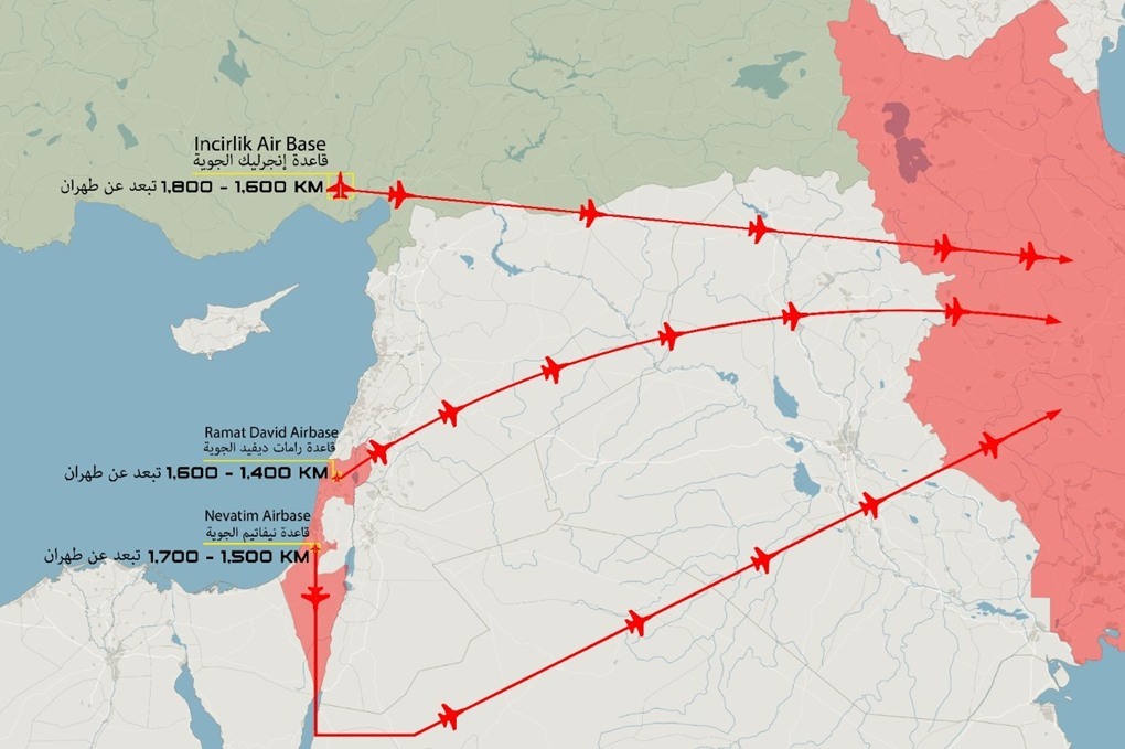 خريطة تظهر مسار الهجوم الإسرائيلي الأمريكي على إيران
