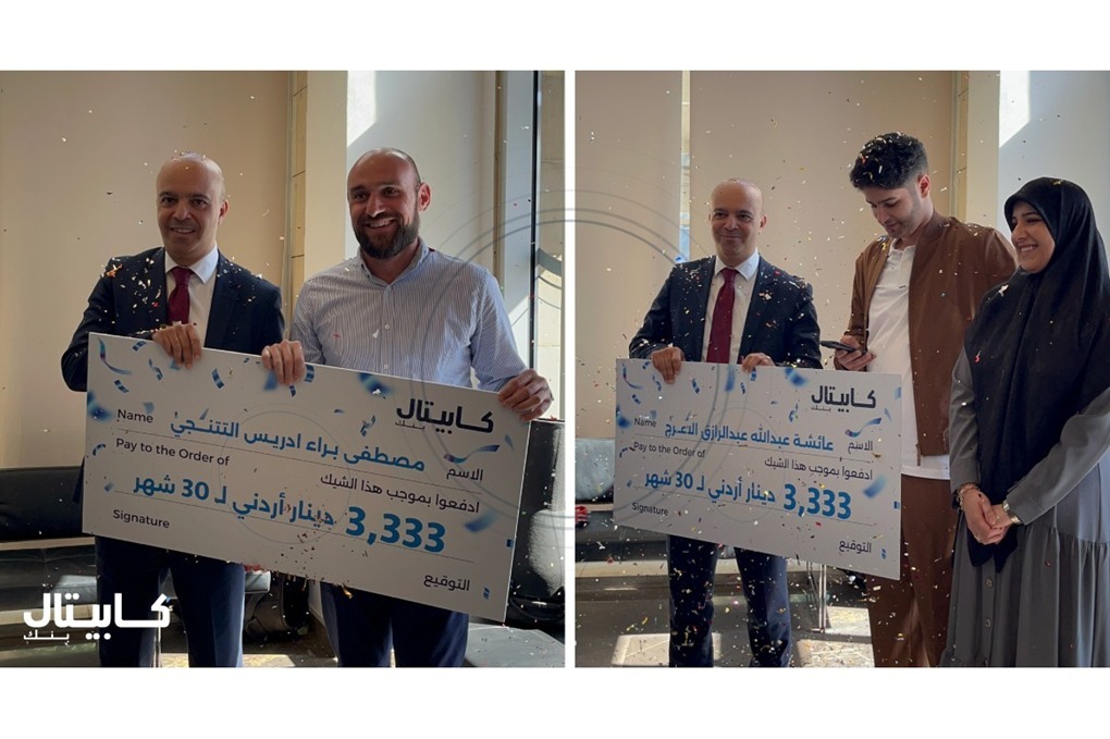 كابيتال بنك يعلن أسماء الرابحين بجائزة "3,333 ديناراً شهرياً لمدة 30 شهراً" ضمن حملة حسابات التوفير