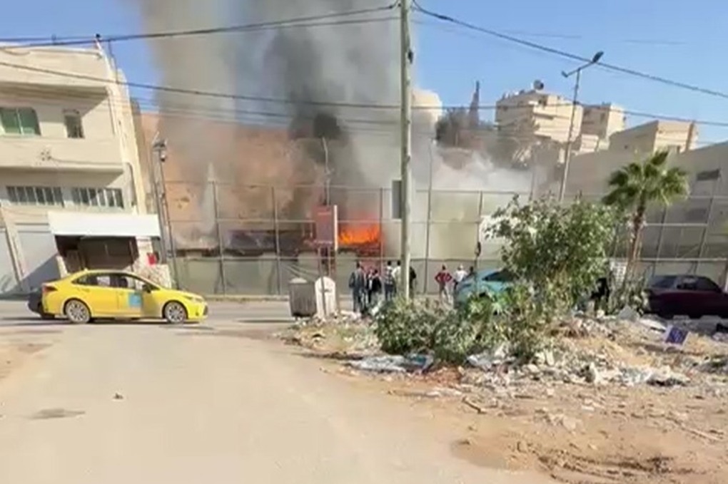 حريق في ملعب كرة قدم بالرصيفة - فيديو