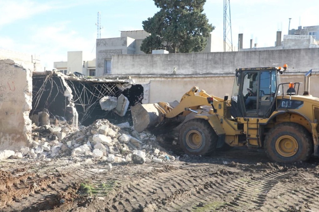 إزالة بناء مهجور وآيل للسقوط بمنطقة المنارة في اربد