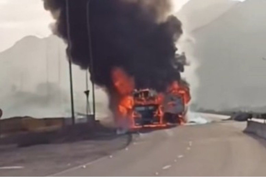 إغلاق الطريق الخلفي احترازيًا بعد تصادم صهريج وشاحنتين واندلاع حريق