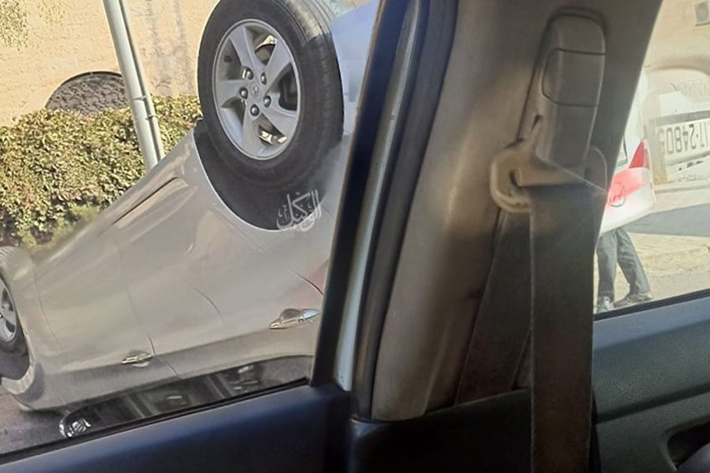 انقلاب مركبة على حرم إشارة السفارة الصينية بالرابية - صورة