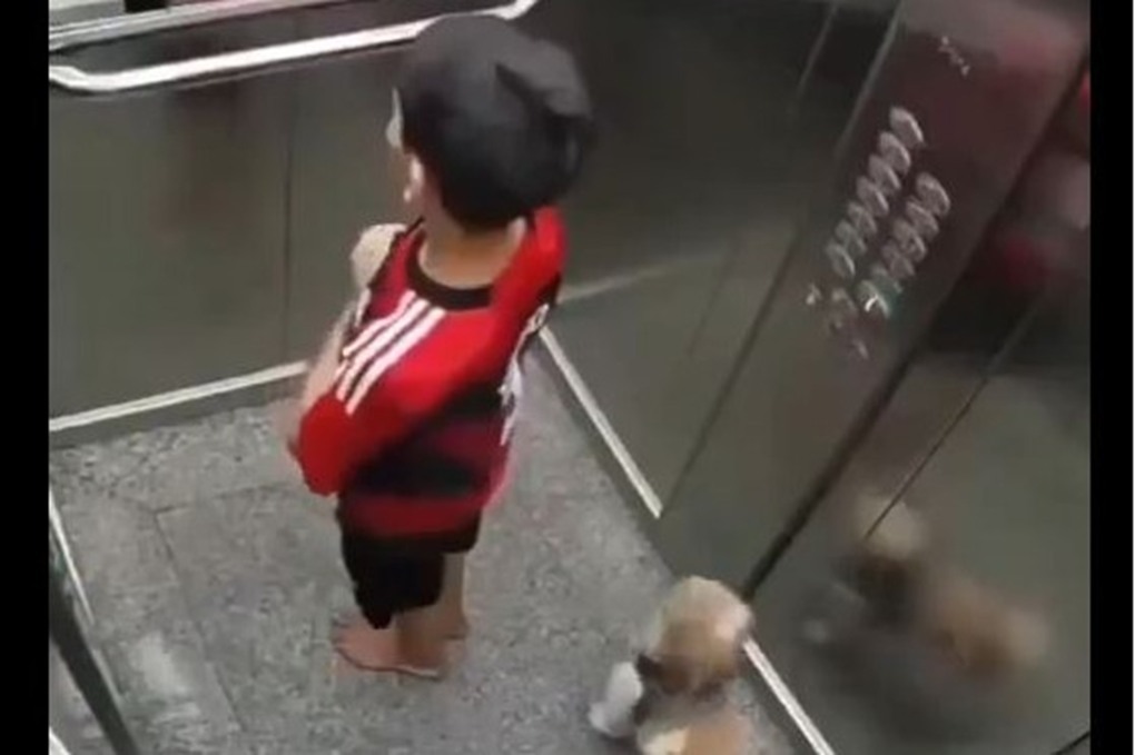 طفل تمكَّن من إنقاذ كلبه في اللحظة الأخيرة، بعد أن عَلِق طوق الكلب في باب المصعد أثناء هبوطه