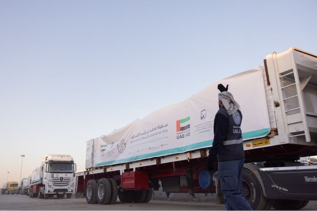 387 طناً من الغذاء تدخل غزة ضمن أولى دفعات سفينة "محمد بن راشد الإنسانية"