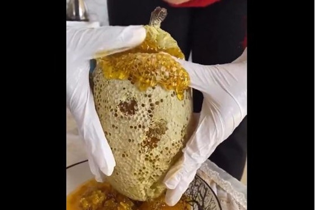 استخراج العسل من خلية نحل كبيرة
